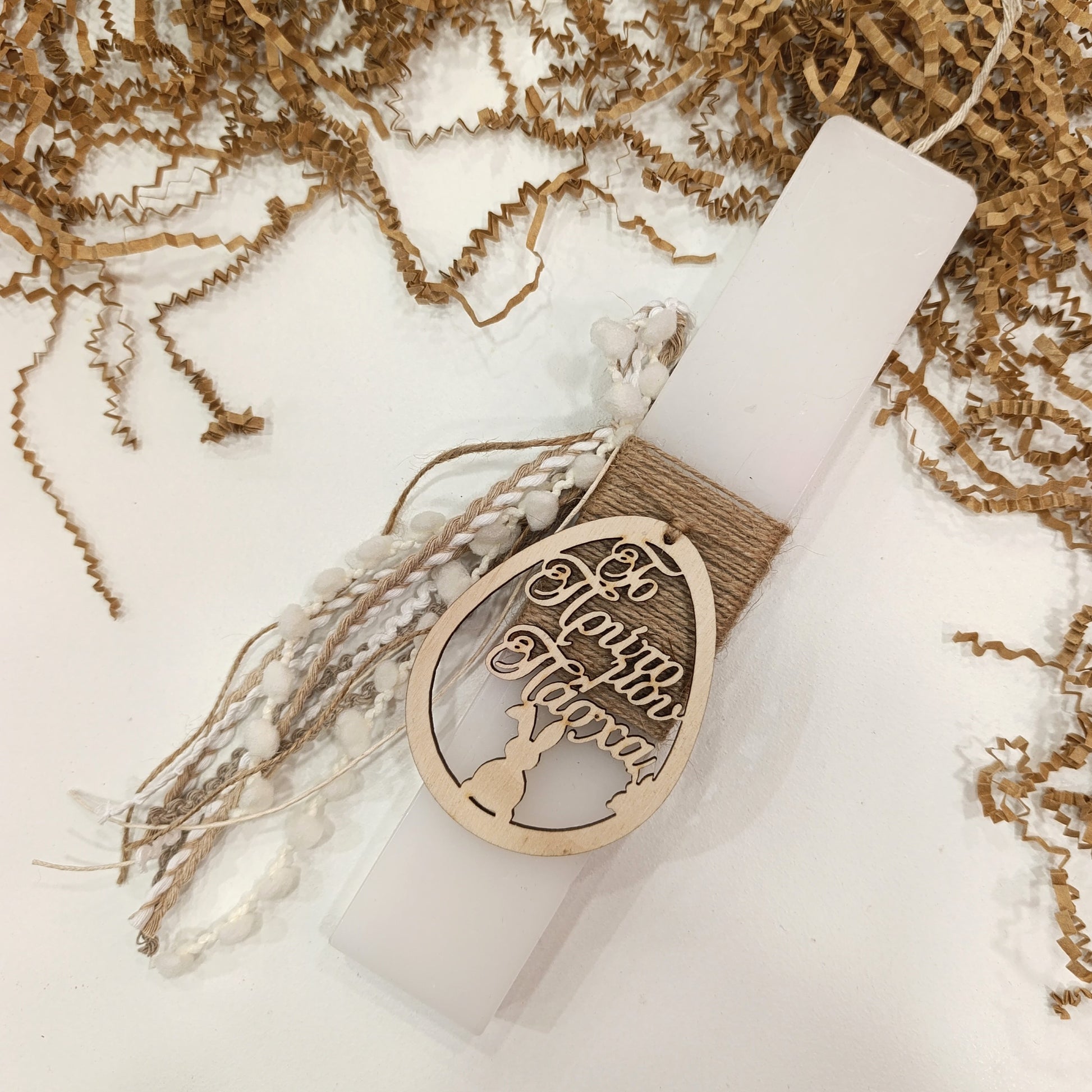 Οι πασχαλινές λαμπάδες μας είναι 100% χειροποίητες, φτιαγμένες με αγάπη και προσοχή στη λεπτομέρεια, ειδικά για μικρά χεράκια . Κάθε λαμπάδα διακοσμείται με ξύλινο διακοσμητικό περίπου 10 εκ., και ολοκληρώνεται με υφάσματα, κορδέλες και κορδόνια που επιλέγονται ανάλογα με το σχέδιο, δημιουργώντας ένα γλυκό και παιχνιδιάρικο αποτέλεσμα.